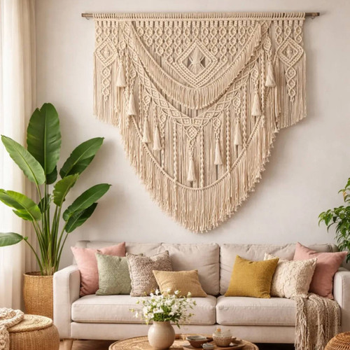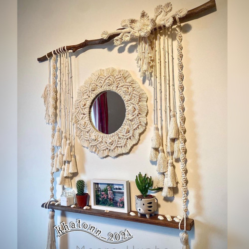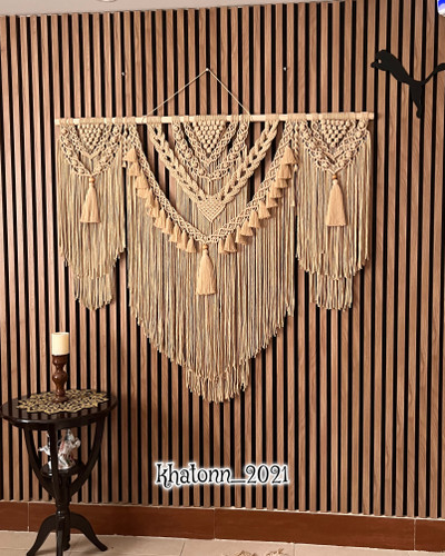 دیوارکوب مکرومه هنر دستبافت با نخهای طبیعی است که جلوهای گرم، هنری و خاص به دیوارهای خانه میبخشد و مناسب دکوراسیون سبک بوهو و مینیمال است. فروشگاه اینترنتی مکرومه بافی خاتون 2021 ارائه دهنده جدیدترین مدل های دیوارکوب مکرومه با بهترین قیمت می باشد.