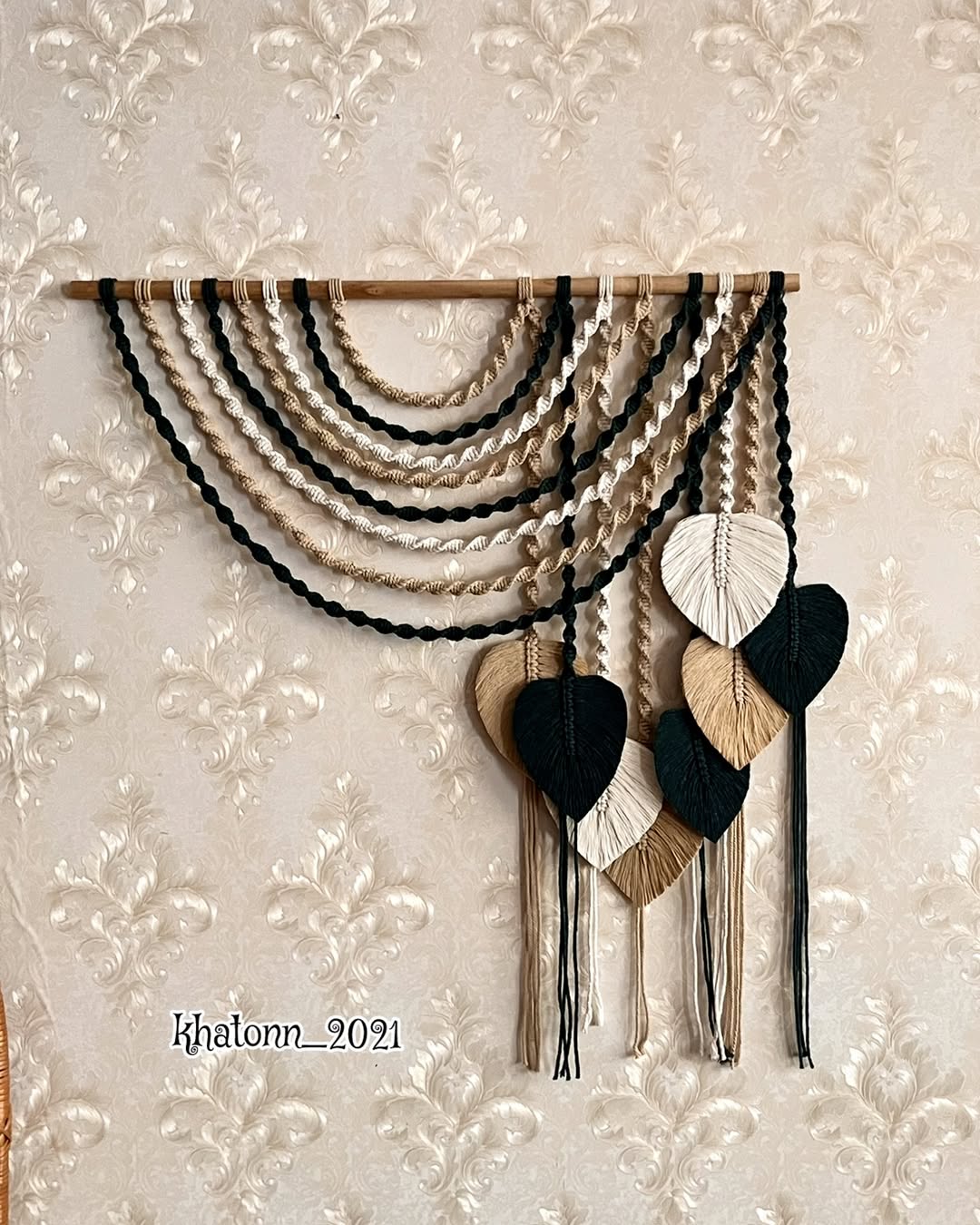دیوارکوب مکرومه هنر دستبافت با نخهای طبیعی است که جلوهای گرم، هنری و خاص به دیوارهای خانه میبخشد و مناسب دکوراسیون سبک بوهو و مینیمال است. فروشگاه اینترنتی مکرومه بافی خاتون 2021 ارائه دهنده جدیدترین مدل های دیوارکوب مکرومه با بهترین قیمت می باشد.