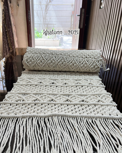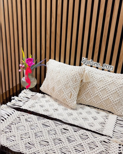ست زیبای کوسن مکرومه و رانر مکرومه طرح سوگل