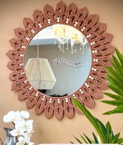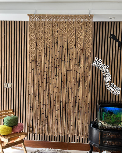 پرده مکرومه رویش رنگی با مهره چوبی🤎🤍