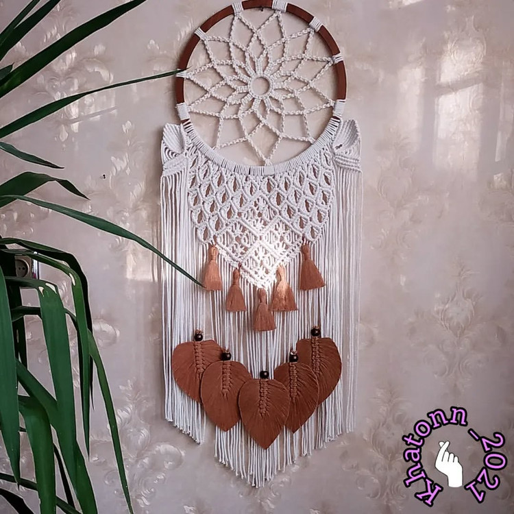 در بین اشکال هندسی چه شکلی براتون جذابتره؟ آیا دایره رو دوست دارید؟؟ دایره مفاهیم مثبت و متنوعی داره،اتحاد دوستی،عشق و پایداری از مفاهیم روانشناسی دایره میباشد دایره نشاندهنده حرکت و زمان است.حرکتی بدون آغاز و پایان چون دایره آغاز و پایانش مشخص نیست. دریم کارهای مکرومه گرد هستن و دایره و برای سلیقه های خاص همچنین برای دیوارهای کوچک هم میتونید انتخاب کنید. قطر دایره به انتخاب شما تارقطر ۱۰۰هم میتونید سفارش بدید. این دریم کچر مکرومه قطر کار ۳۵ سانته و ترکیب دو رنگ شیری و دارچینی و مهره چوبی ...