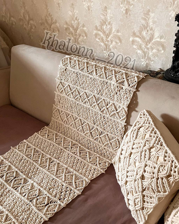 تمام رانر های مکرومه با توجه به ابعادشون برای شال مبل رومیزی و حتی شما میتونید به عنوان فرشینه هم استفاده کنید