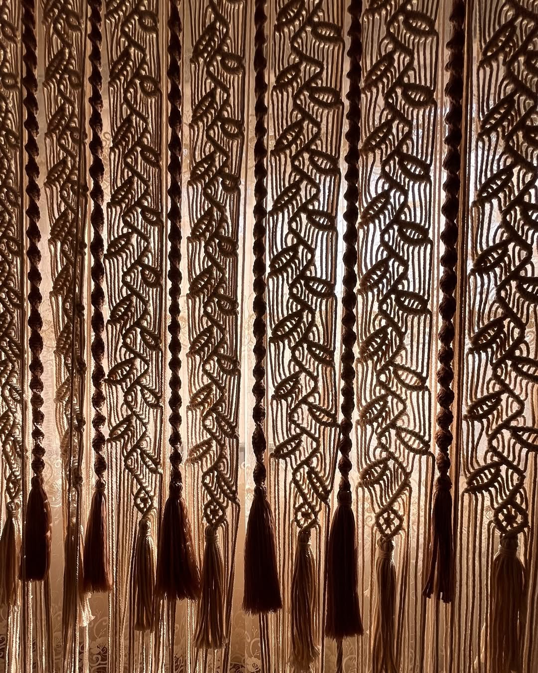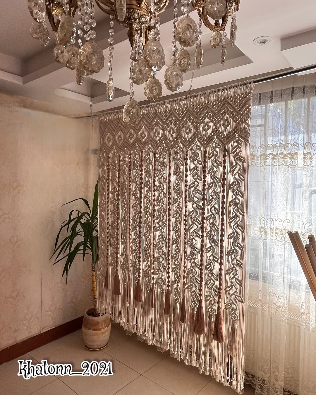 این پرده مکرومه زیبا طراحی خاص و منحصربه فردی با ابعاد ۱۴۰ در ۱۷۰ سانتیمتر است. پرده مکرومه در کنار پنجره وبازتاب رقص هنر نخ و نور و سلیقه میباشد.یه کار بسیار زیبا و ارزشمند و کار دست که از یه دوک ساده چنین شاهکار زیبایی خلق شده است. به درخواست یه دوست خوش ذوق این طرح اجرا شده و بسیار هم زیبا شده. این پرده بسیار پرده پریافتیه و از ماریال بسیار با کیفیت استفاده شده مناسب هر فضا و سبک دکوری میباشد. رنگها و ابعاد کار قابل تغییر هستن و در اندازه مورد نیاز شما اجرا میشود. برای قیمت و سفارش پرده مکرومه حتما قبل از واریز پیام بزارید و قیمت و طرح و رنگ رو توضیح بدید