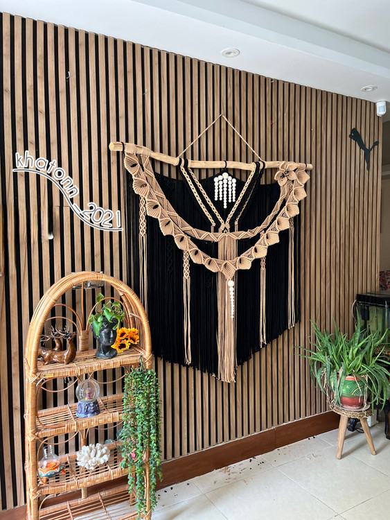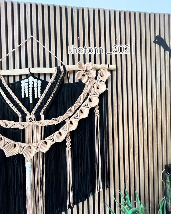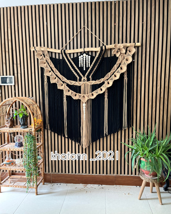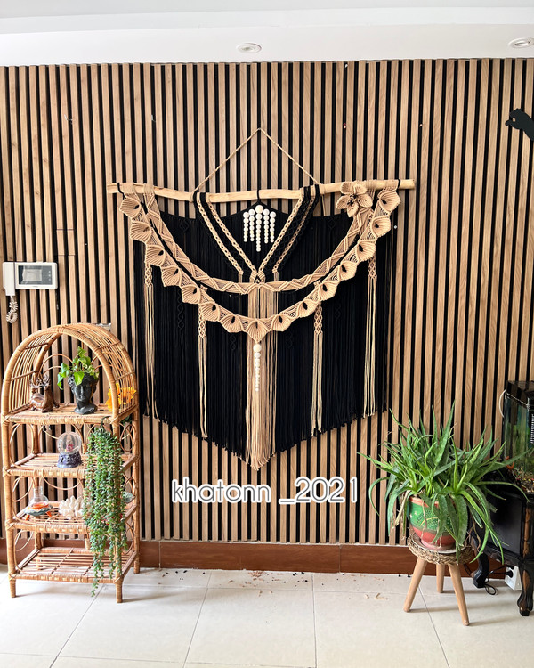 - «آیا دیواری در خانه دارید که حس میکنید چیزی کم دارد؟ این مکرومه مشکی، قطعهی گمشدهی دکوراسیون شماست.»